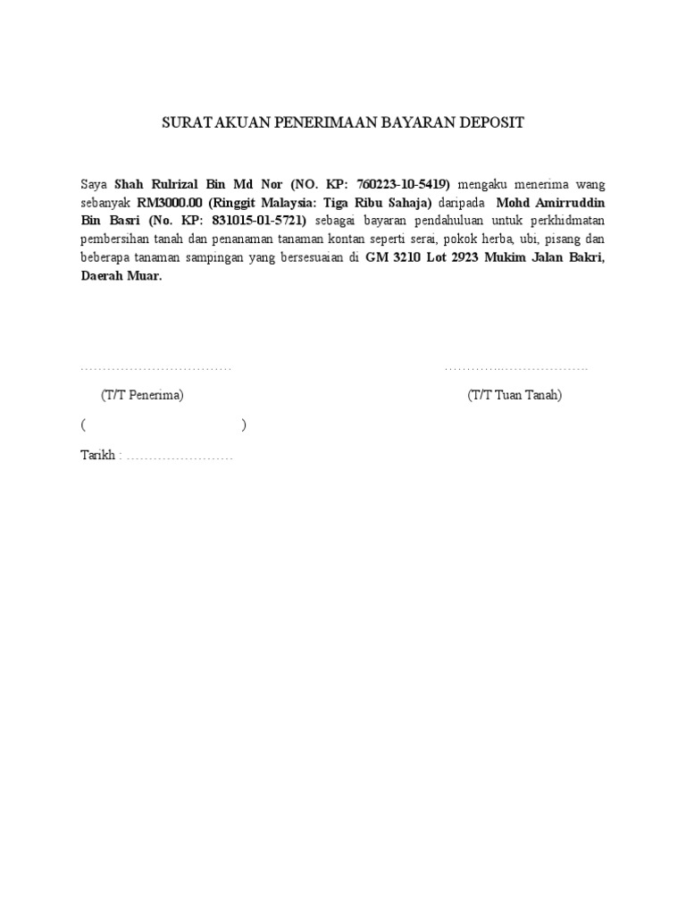 Contoh Surat Hitam Putih Bayaran Deposit Beli Tanah. Contoh surat perjanjian deposit pembelian rumah download kumpulan gambar. Other Apps - July 01 2022 Pin By Ramli Rosman On Surat Perjanjian Sewa Rumah Surat Some Pictures Picture Pin Di Surat Beli Contoh Deposit Tanah.